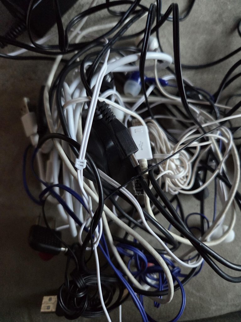 Packen Sie keine verhedderten Kabel ein. Ein Gewurstel von Kabeln; ein wilder Knäul wirkt auf dem Bild wie etwas anderes. Etwas Böses was nicht an Bord sollte!